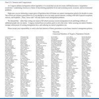Such a reduction in the scale of our economy could only be achieved by a substantial reduction in the size of our population, so that after an interim period of negative growth we could eventually stabilize the size of our population at a sustainable level, far smaller than it is today. Above all we need to reduce massive immigration, the driving force behind the continued and rapid growth of our population. We urgently need a far smaller, not a larger population. Further population growth is the road to ruin, the destruction of our environment, our resources, and our standard of living.