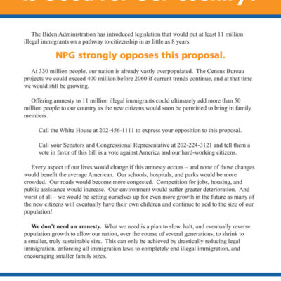 NPG believes everyone must work together to slow, halt, and eventually reverse population growth. By contacting our representatives and speaking out within our communities, towns, and states, we can enact change and stand with the ecologists working towards a sustainable future for all.
